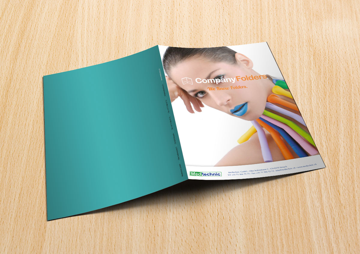 Diseño de carpetas de ventas para Medtechnic, una empresa de distribución de materiales médico para clínicas.